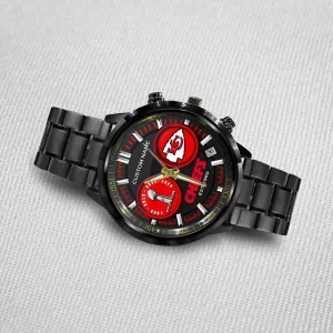 Kansas City Chiefs NFL Personalized Black Stainless Steel Watch Gift For Fans
